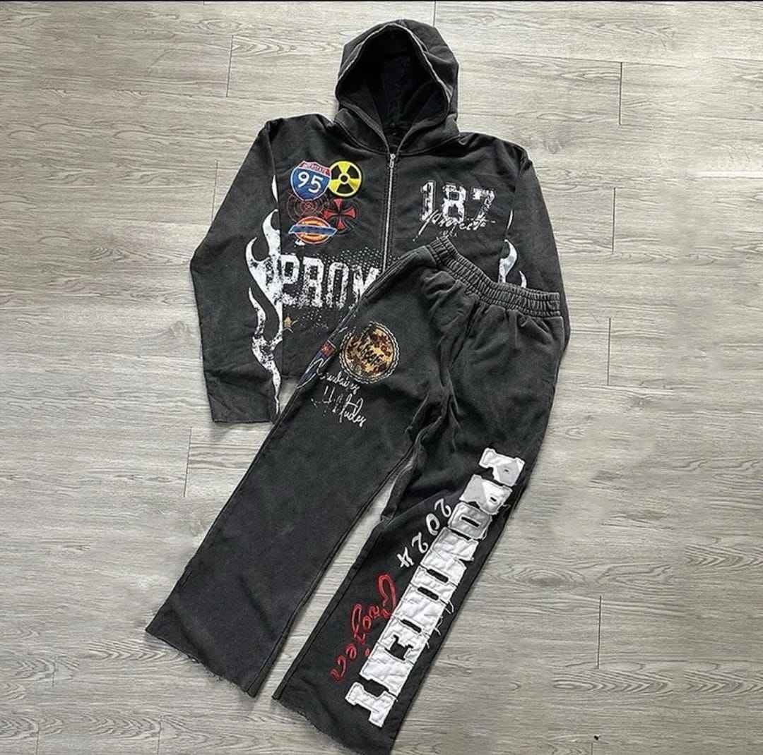 This tracksuit is more than just clothing—it’s a statement. The custom graphic prints, washed finish, and standout “Prominent” detailing deliver a strong urban-style look. Whether you’re hitting the streets, heading to a casual hangout, or just want eye-catching loungewear, this set is built to impress.